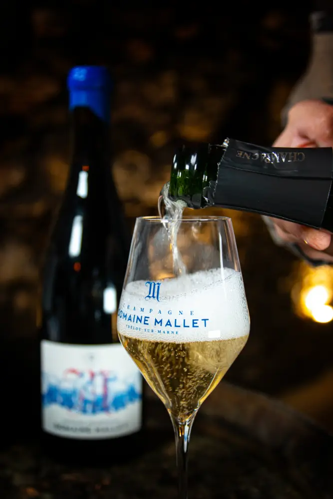 Dans un monde où le champagne se vend parfois plus pour son image que pour son goût, ici on revient à l’essentiel : le pays d’Aisne trop souvent omis. Cépage rustique et exigeant ; le meunier est bavard et exprime tout haut ce que les vignes murmurent. Chaque bouteille du Domaine Mallet porte en elle le fruit d’un labeur partagé, l’écho d’un village, le trait d’un caractère.